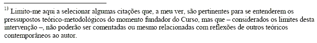 Relidas hoje, as citações evidenciam aspectos que viriam a ser fortemente criticados por vertentes dos Estudos da Tradução surgidas nas décadas subseqüentes: a noção de um sentido intrínseco ao texto e dissociado da intervenção do leitor, a separação entre sujeito e objeto, teoria e prática e – como decorrência disso – a apologia das noções de fidelidade e equivalência, só para citar alguns aspectos. Entendidas, porém, no interior da proposta que norteava a criação do Curso e que, como dissemos, sublinhava o papel instrumental da tradução (reservando tão somente ao poeta-tradutor alguma margem de liberdade na empreitada de traduzir poesia), as citações não apenas servem de moldura a esse projeto, como também lhe servem de alicerce.