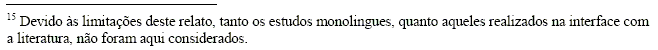 Área de Semiótica e Lingüística Geral: além de numerosos estudos descritivos do português nos diferentes níveis da análise lingüística e de estudos na interface da língua e literatura 15, encontram-se aqui trabalhos de base contrastiva envolvendo um par de línguas: